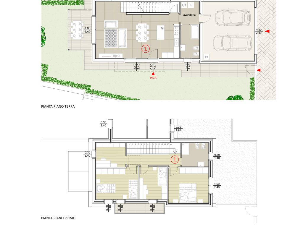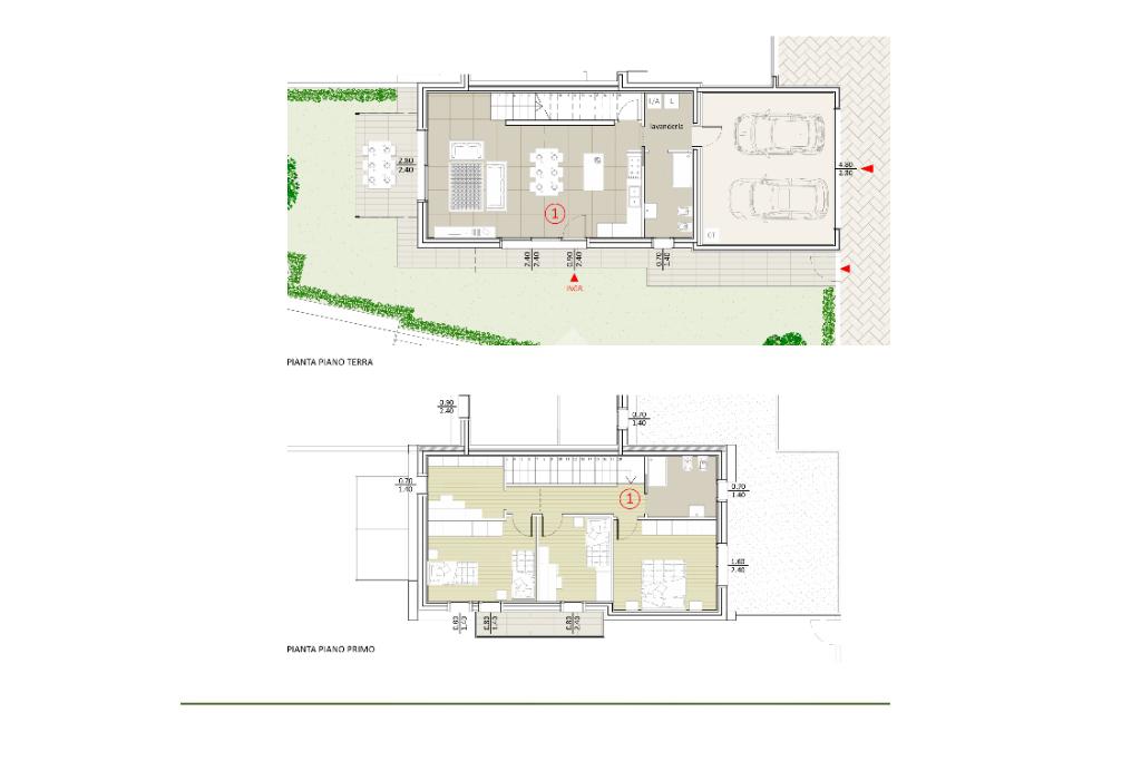 Al piano terra troviamo una spaziosa zona giorno open space di oltre 40 mq con soggiorno e cucina affacciati sul portico e sul giardino privato, ideale per momenti di relax e convivialità all’aperto. Completano il piano una lavanderia, bagno di servizio e collegamento diretto al garage doppio.