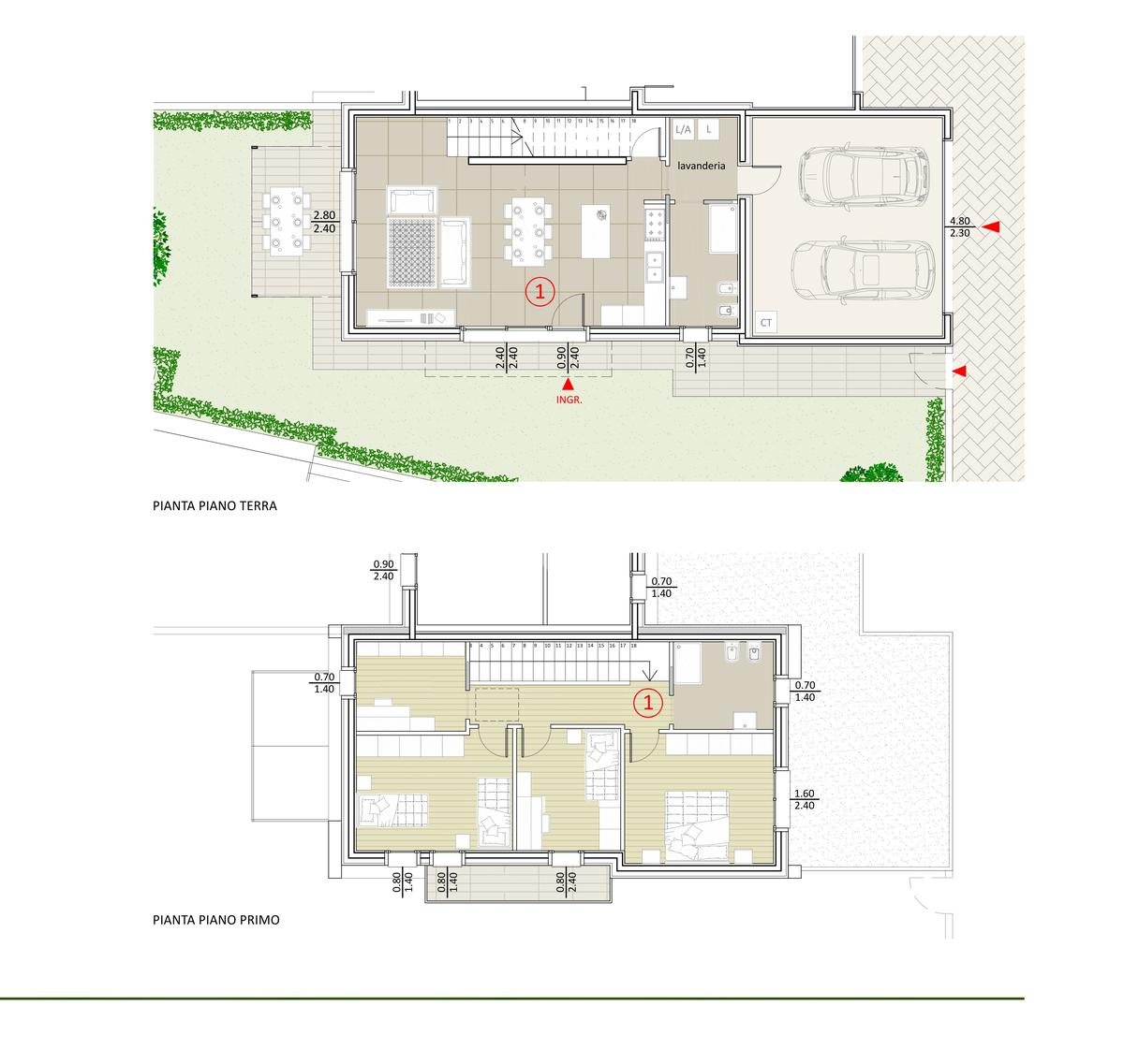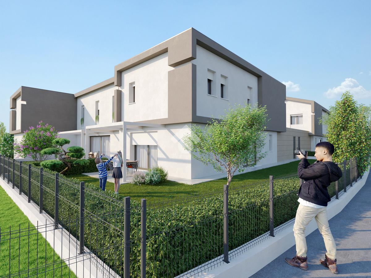 Ogni villetta dispone di giardino esclusivo, garage doppio e posto auto interno.
