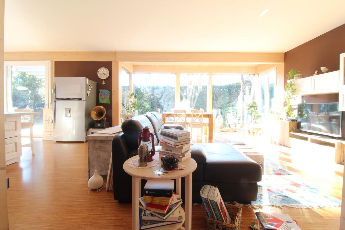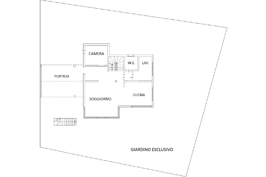 Il piano terra misura 100 mq ed è composto da un'ampia e luminosa zona giorno con grande vetrata scorrevole affacciata sul giardino, un bagno finestrato, una lavanderia e una camera/studio.