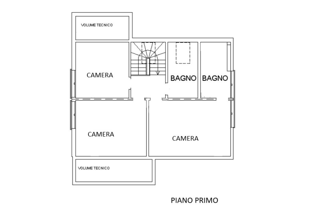 Il piano primo di 85 mq è formato da tre camere da letto e due bagni.