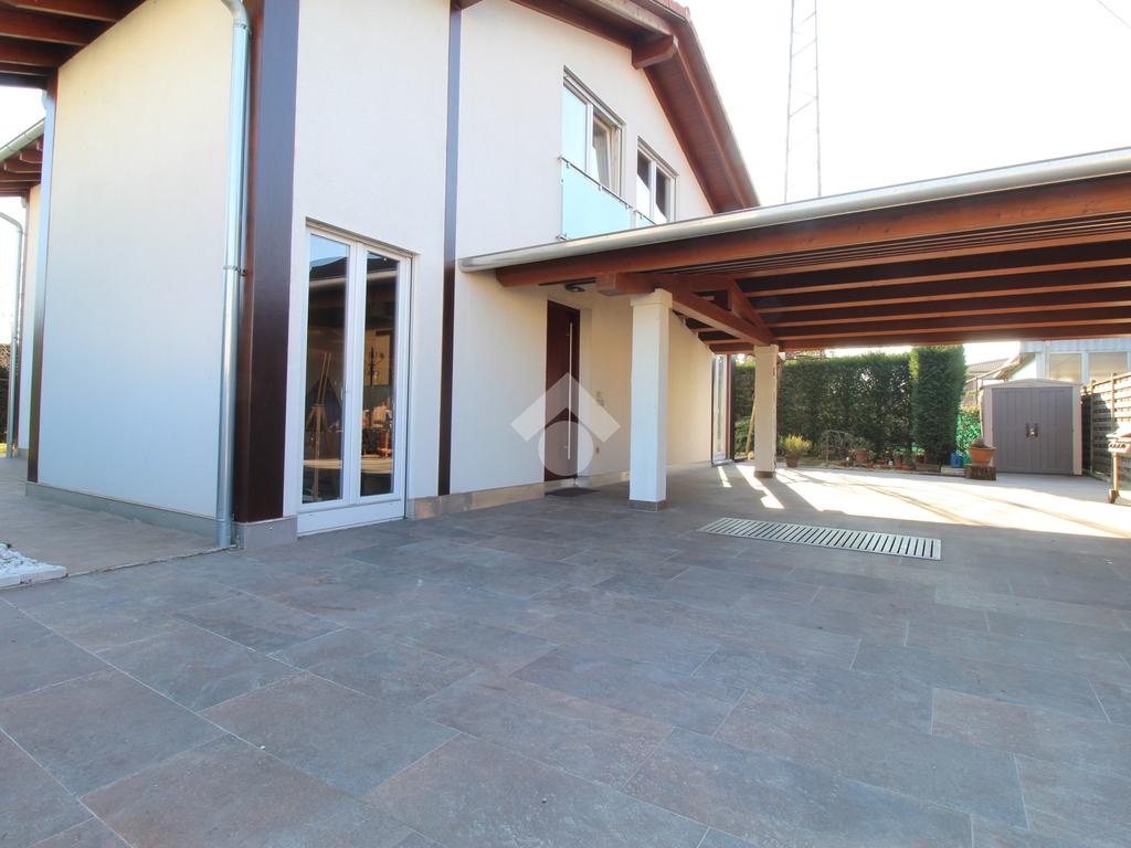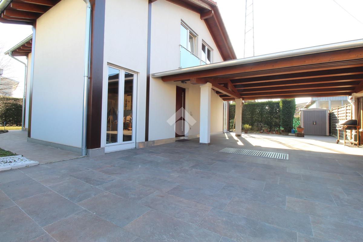 In elegante zona residenziale tranquilla e riservata, proponiamo in vendita villa singola edificata nel 2008 in bioedilizia, inserita su lotto di circa 600 mq con giardino piantumato e ampio portico coperto.